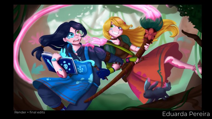 I loved to work with the almost monochromatic color palette of the character 💚(which is my favorite color too x'D).