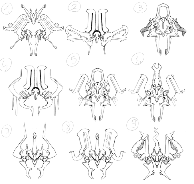 Sentient chestplate, initial concept vs final design.