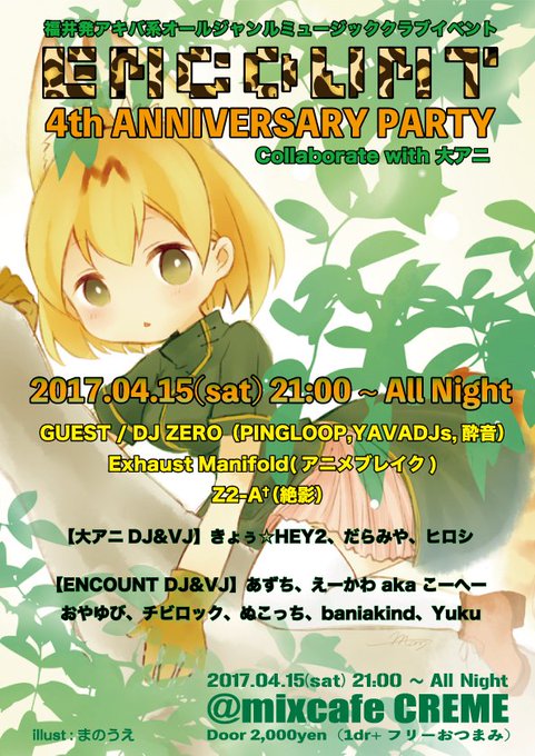 "ENCOUNT 4th Anniversary Party Collaborate with 大アニ" on Apr 15th. RSVP at https://t.co/VgWwzMkEDJ #ENCOUNT