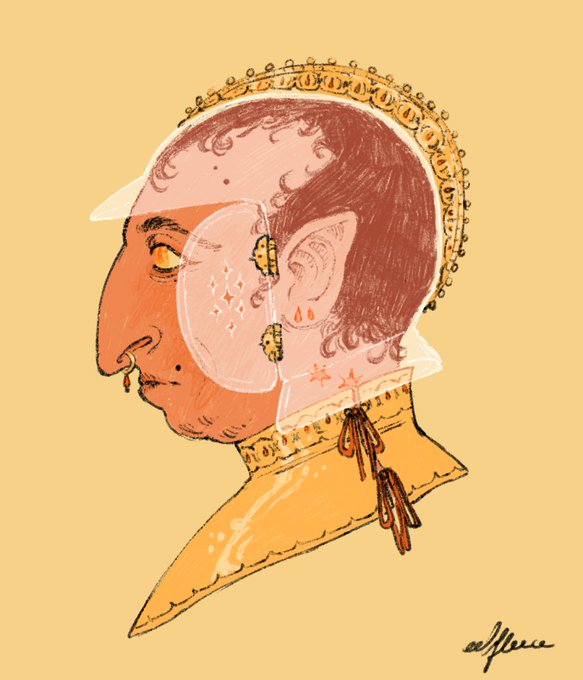 I make illustrations with historical, fantasy, and/or Queer vibes, with an eye for character and narrative. I enjoy things that are a little eerie! 💀👍
