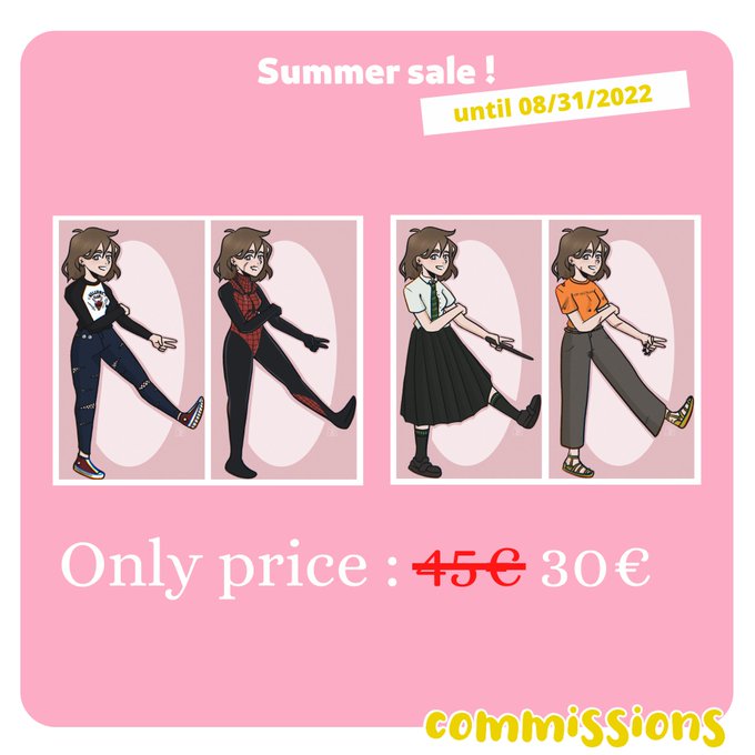 due to personal reasons im in need of money quickly.... so im opening some summers sales and 2 new types of commissions! if you can share to help me i would be oh so grateful 🥹❤️
