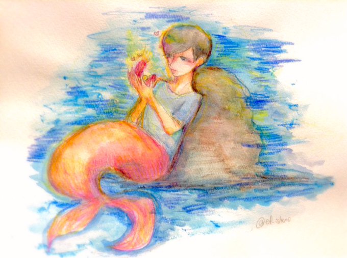 絵本っぽい絵になってしまった… 【#fanart #exo 】 人魚 #lay さん〜 最近のしんぐぅの路線がイマイチわからない😇😇大陸は不思議😇😇