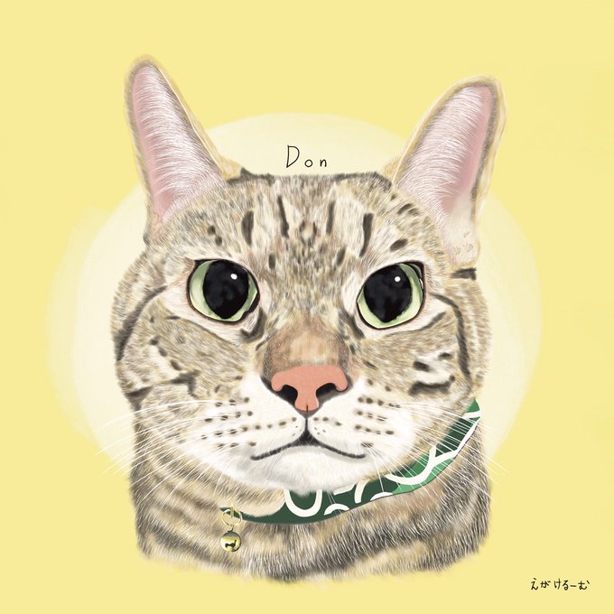どんちゃんは、体の大きなキジトラの男の子なのですが、強さと、それでいて可愛さを意識して描かせていただきました。