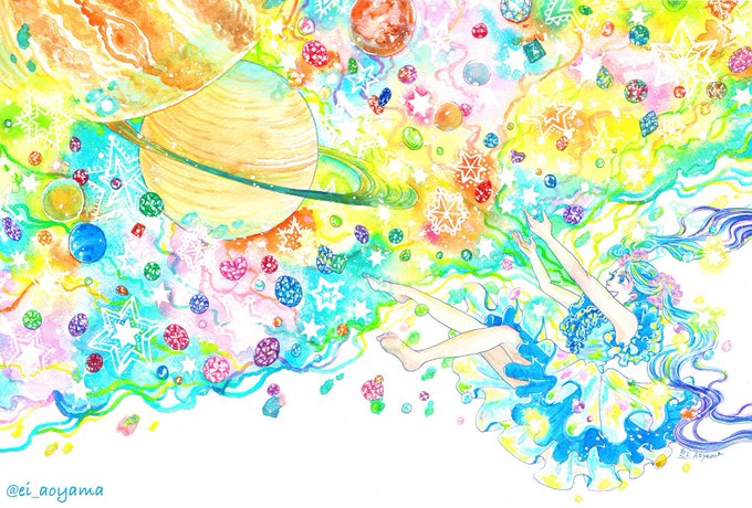 宝石、宇宙、花をメインモチーフに、透明水彩で思い描いた理想郷を描いています🌟🎨💎