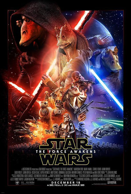 『スター・ウォーズ/フォースの覚醒』キャラクターポスターもジャー・ジャー・ビンクスが侵食!以前『フォースの覚醒』全員ジャー・ジャーポスターを作製したプロの新たな犯行 https://t.co/m5LkDFeJkG #HIHOnews