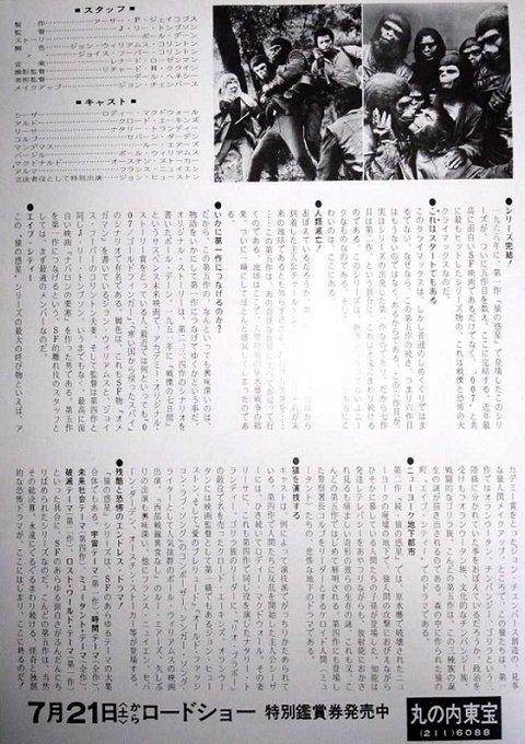 #映画で今日は何の日 製作費がショボくなったのは否めませんが、なんとか旧シリーズ5作を輪廻させて終わらせた意味では良作。ですが大層な原題と米版ポスターを知ると、海外のファンが怒るの無理無いよなぁ…。7月21日【1973年『#最後の猿の惑星』日本公開】#cinemarche #今日は何の日