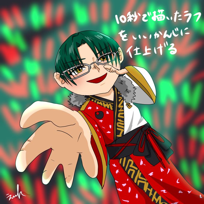10秒で描いたラフを交換していい感じに仕上げる遊びをしました。 テーマはアイドルポーズ。 あんスタのはすみけいと。 ラフ→椋さん(@Rainy_Dragon)