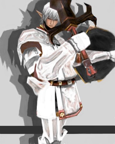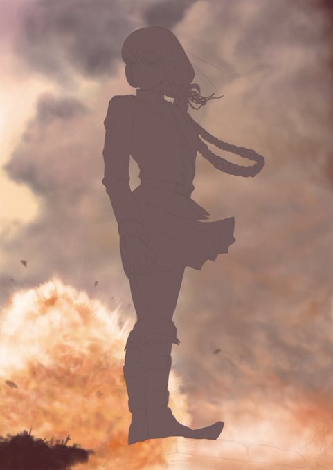 今回は全体的に暗めな色調にしようと思ってたんで、まず線画を基に暗い色でシルエット作って、その上に別レイヤーで暗い色から明るい色へ塗り重ねていってます。いつもと逆ですな。