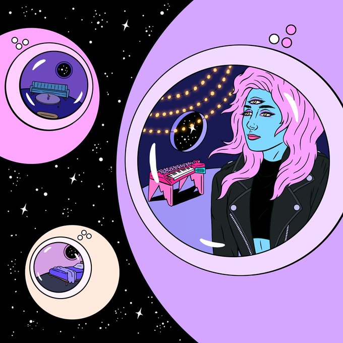 🌹 collab project with @franciscamusic x @society6 x @GirlschoolLA! prints available at Society6 and at the Girlschool festival in LA! 🎹💕✨👽💜🌙