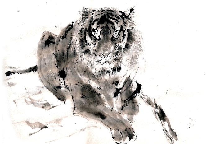 先日とは別の虎を観察出来ました。 個体が変わると描きたい絵もまた変わるようです。 #一日一虎