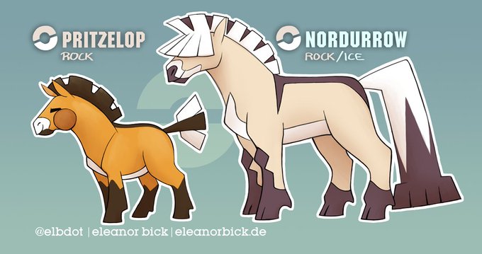 I got hit with motivation to finish two fakemons I started drawing a few months ago :D Just like with bugs and birds I can never get enough of new horse pokemon, so here's a Przewalski fakemon evolving into a Norwegian Fjord horse :DD More infos & shiny forms in the thread below!