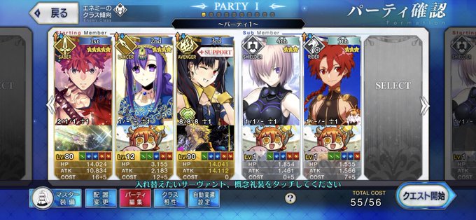 夢のstay night編成。 マアンナがデカ過ぎてキャストリアに刺さってる。 #FGO