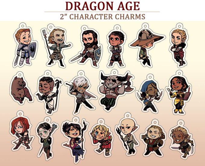 a couple #DragonAge commissions (plus a vivienne) that will be available as charms in a few weeks on my shop!!