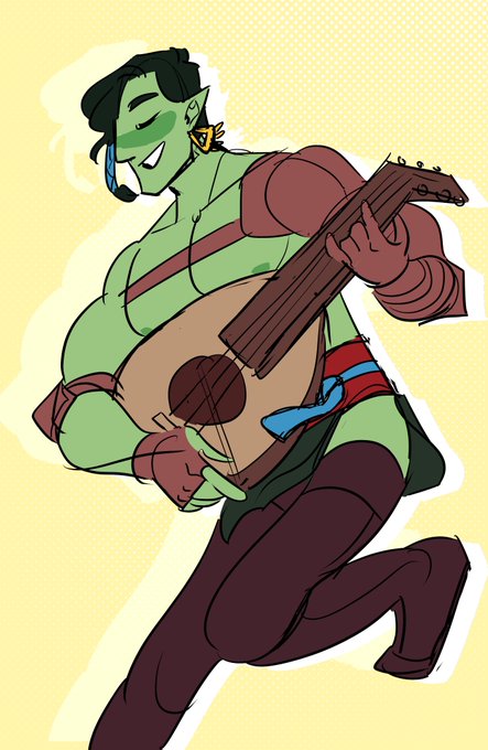 Some doodles of my half-orc bard Everett (feat. the rest of my party in the last pic)