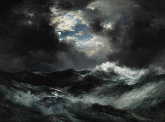 "Moonlit Shipwreck at Sea" (1901) by Thomas Moran