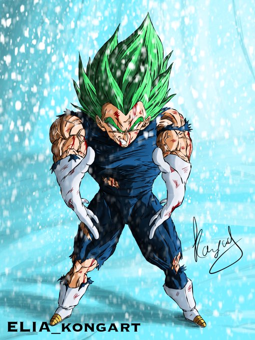Next one is a re-interpretation of Vegeta powering up from the movie! I haven’t seen many fanarts of him being in it with his green hair,despite looking fire 🔥