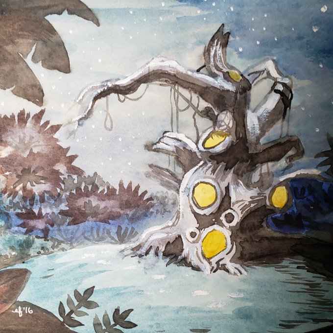 Today’s thing is a 7.5 x 11” watercolor/gouache of Hangman’s Tree, where Peter Pan and the Lost Boys live.