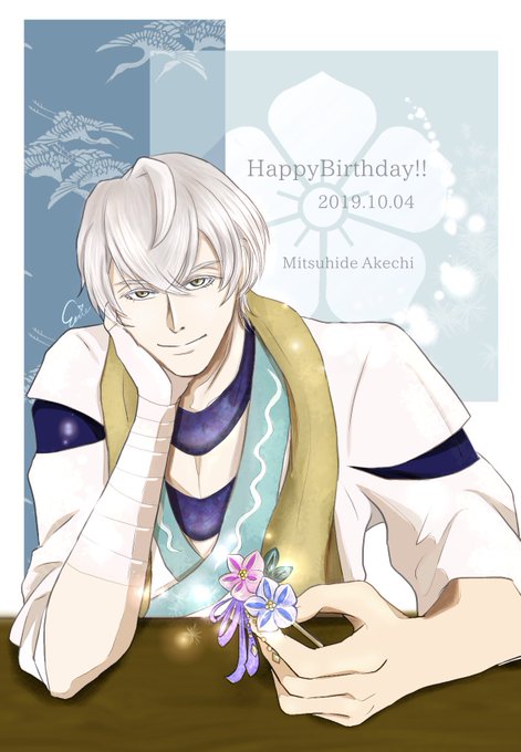 光秀さんお誕生日おめでとうございます(ᐥ꒳ᐥ )!!去年は舞台上の光秀さんのイラストでした。今年は配信や嬉しいお知らせもありぐぐーっと距離が近づいたのでテーブル越しまで詰めてみました//💕#光秀誕生祭 #明智光秀誕生祭 #明智光秀誕生祭2019 #イケメン戦国 #明智光秀 #みっちゃんBD