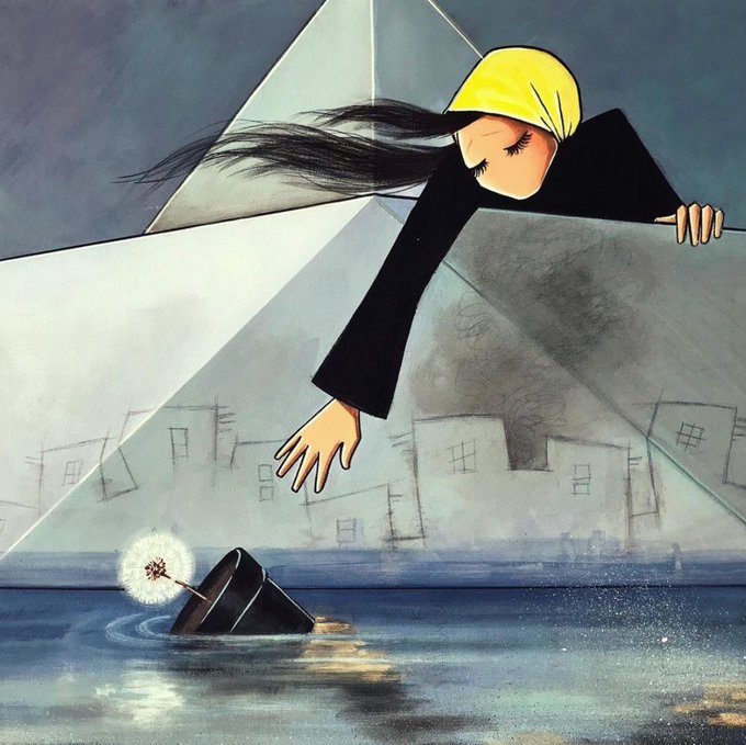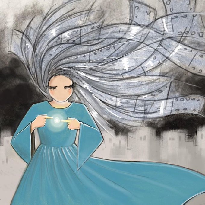 The incredible and brave @ShamsiaHassani uses her work to express the emotional pain and fears of women in Afghanistan right now. Her beautiful artwork often demonstrates 'wishes' of the Afghan women and how they seem to be quickly fading away. 💙