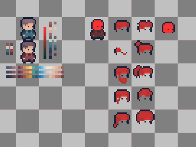 A lil behind the scenes on our character customisation - we actually use a red sprite where each shade of red matches to a specific colour, and use a shader to apply the mapping for your cute lil outfits!!
