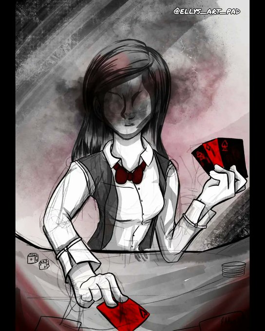 A lady in a suit, showing all 4 suits of cards... 🌟
