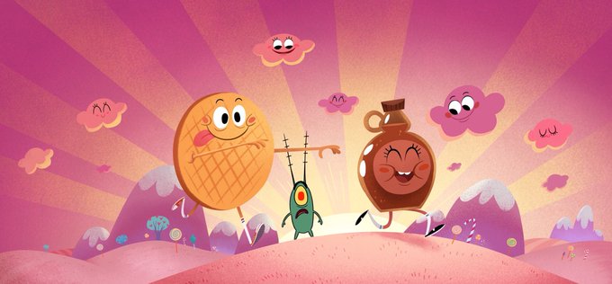 Sharing some of the work I did on SpongeBob 2 a few years ago. I did some color keys for a dream sequence and some exploration of cutiefied SpongeBob and Plankton that got cut from the film. (1/2)