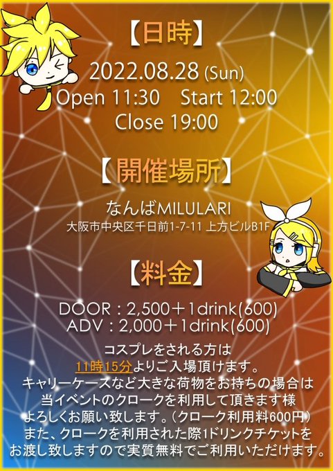 8月28日(日)11:30- なんばMILULARIで開催