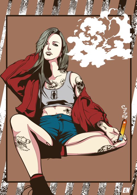 vapeと女子のコンボのイラストは何枚か描かせていただいたんですけど、自分のはどちらかと言うと人物主体のイラストが多いです