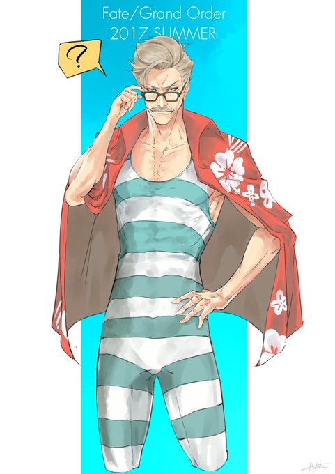 夏イベ終了記念に水着新茶描きました。教授はレトロ水着を何食わぬ顔で着こなしそうだよね… #FateGO #FGO