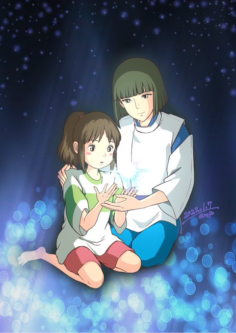 はじまりの朝の 静かな窓 ゼロになるからだ 充たされてゆけ 海の彼方には もう探さない 輝くものは いつもここに わたしの中に 見つけられたから 放送記念😊おめでとうございます🎊 #千と千尋の神隠し #ハク千 #金曜ロードショー