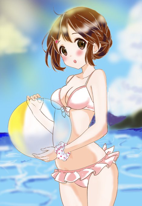 お題箱より オリジナルでスク水を試着している子。お腹くらいまで着 ' てる途中。 ありがとうございました!!