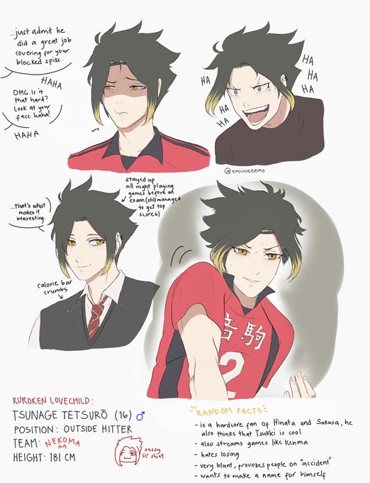 MEET TSUNAGE TETSURO! he's my contribution to the next gen gang! i also made him meet sora (@ringoismymood's beautiful kagehina lovechild :>)