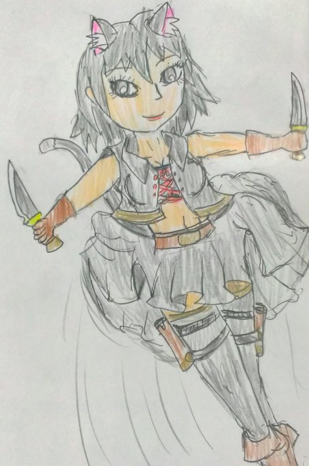 (創作)猫耳盗賊の少女レミーナの武器はスカートの中に隠した二本のナイフを使います。