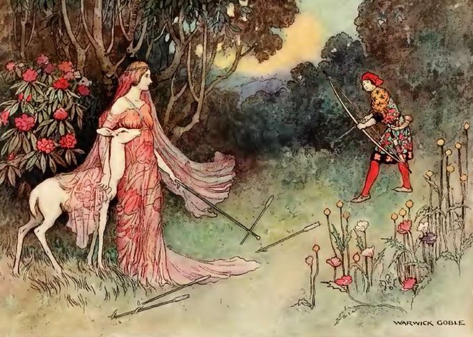 Some fairy-tale princesses for you, as illustrated by Warwick Goble. I love the way tenderness to animals is often woven into his art. ☺️💖📚
