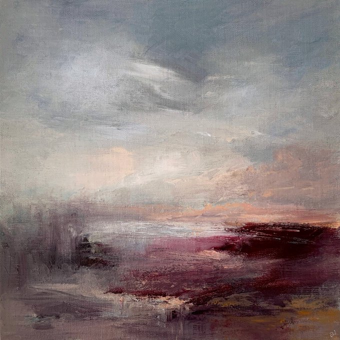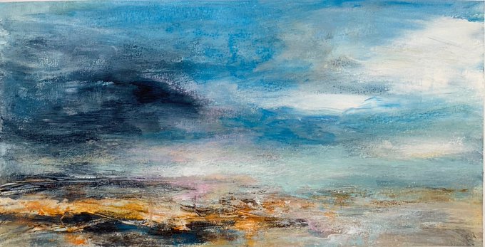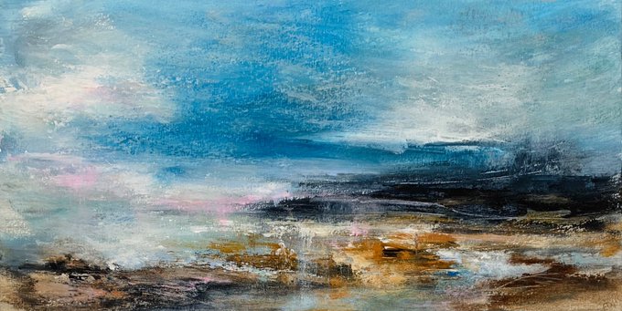 Next available in my SOLACE series, No.3. A warm, blustery landscape, memories of the Moors. 29 x 15cm on heavy Seawhite paper, unframed. DM if interested.