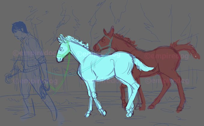 Hi Im still alive. Here's a wip of a horse illustration includes two bay foals. Yes they have eyebrows >:D