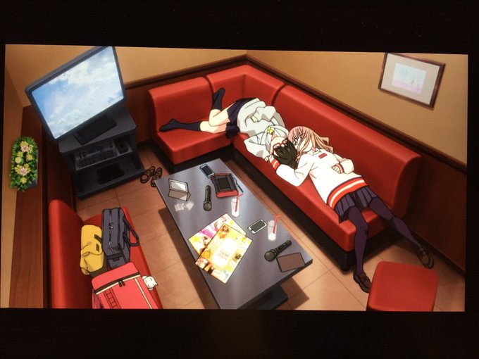鳴衣はイマジナリーフレンド説検証。4話。カラオケボックス。ここでも2人きり。おかあさん呼びあり。☯️のような配置は2人が陰と陽のような表裏一体の存在であることを暗示している?