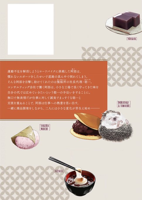 丸々表題作です。製餡所の社長代理・聡一とコンサルティング会社勤務・阿部の物語です。出会いから恋心の気付きまでゆっくりとした雰囲気で「餡子」の様な甘さですね。おじさま好きな私得な物語でもありました♡