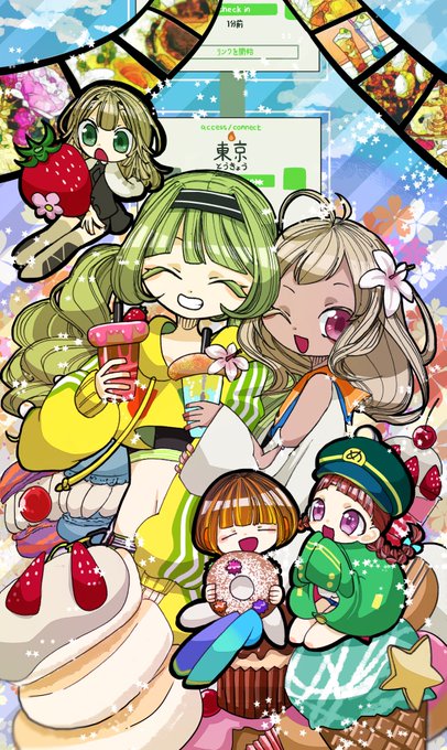 #駅メモ7周年イラストコンテスト 電車なんて無縁の出不精田舎人の私が、駅メモを始めて気づけばお出かけ大好きに♡♡ 今ではフッ軽に成長。ぴゅんと出かけて色んな電車に乗って、その先々でスイーツ巡りするのが趣味になりました!でんこ達、いつもありがとう🧡🧡