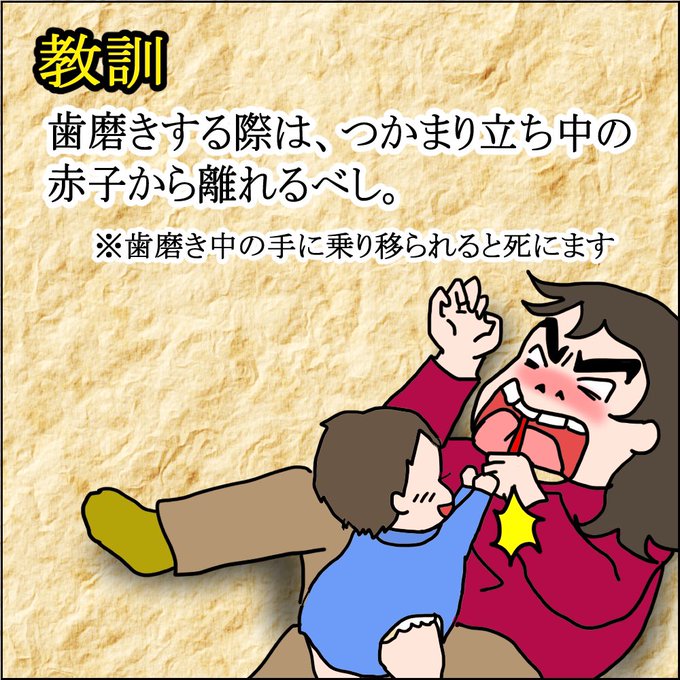伝い歩きするようになってから、近くのものに乗り移るということを忘れてました🤣あー苦しかった。笑 #育児あるある #子育てあるある #漫画 #イラスト #エッセイ漫画 #育児絵日記 #育児漫画 #マンガ #すくパラトリプル総選挙