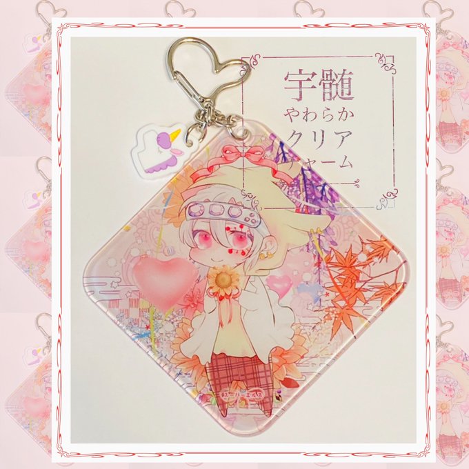 #MYDOO さんにゆめかわフェアで作っていただいた宇さんのやわらかクリアチャーム!初グッズなので不備がないかハラハラしていましたが無事でした〜!🙌✨ ほんとに堪らなく幸せ!何度も眺めちゃってる…。とても綺麗に印刷して頂けました!ありがとうございます😭🙏💕 ユニコーンチャームも可愛い💕