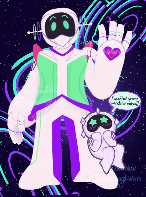 my first art of the year on the day of my birthday and it's my wootteo redesign if he was a robot space wanderer! drew this to cope with the feeling of missing seokjin 🫂🫂🫂🫂