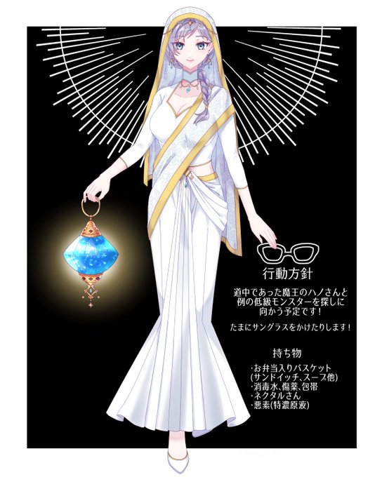 @MAOMIL_TL 聖女アムリタ、イベントログインです! 遠足みたいな装備ですがやる気は十分です!よろしくお願いします! #まおみる_聖なる光のみちしるべ