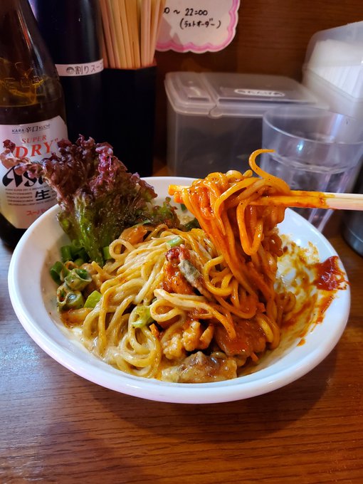 鶴橋「麺と肉 だいつる」ホルモンまぜそば3辛マヨネーズトッピング。ヽ(*´∀`)ノ♪美味しかった!(*゚∀゚)*。_。)*゚∀゚)*。_。)#麺と肉だいつる