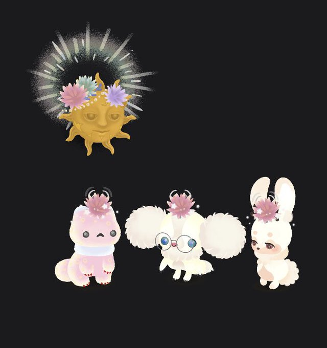 いただいた「砂世界の草」でコーデ楽しい🥰 お揃いにするとめちゃくちゃ可愛いし カエルさんに添えても可愛いし お面につけると神々しいです✨ もちろん太陽神でいます🌞