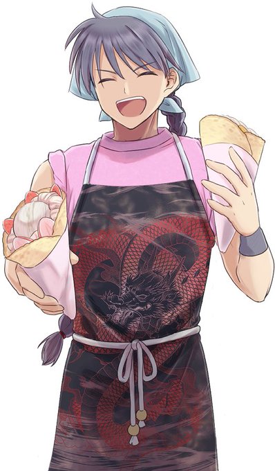 先日描いたやつ、キャンペーンシナリオで文化祭編があったのでクレープ屋さん仕様かきました エプロンは小学生家庭科のアレイメージ