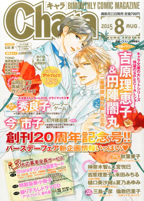 【お知らせ】キャラ8月号に二重螺旋の二人で表紙とコミカライズショート前編描かせていただきました。本日6月22日発売よろしくお願いします! 創刊20周年記念ということで色々フェアもあるらしいので公式サイトを是非チェックしてみて下さい〜。