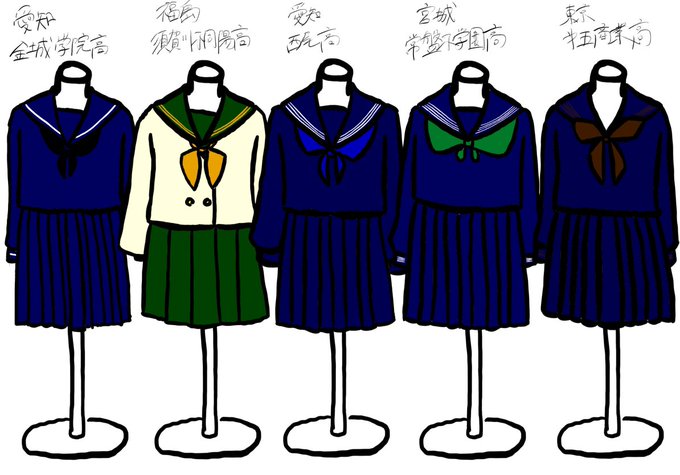 セーラー服の線が1本〜5本の学校並べてみた