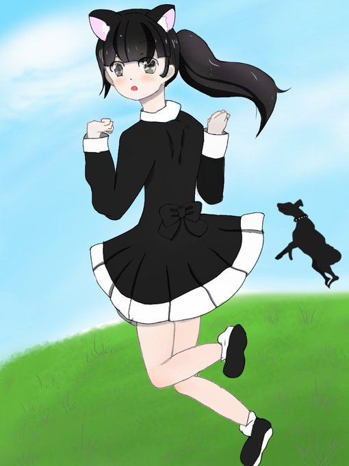 心を合わせて跳び跳ねるつもりが走ってるみたいになってしまったけどアノマリーさん完成です #自宅警備隊描いてみた #ブラレジ