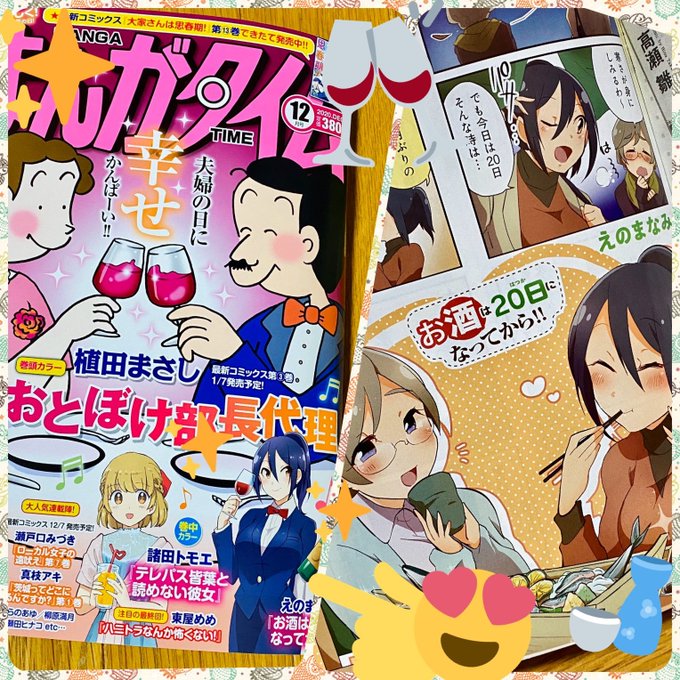 本日12/7発売のまんがタイム1月号に『お酒は20日になってから!!』載ってます!今年最後の楽しみはちょっと贅沢に盛大に…✨楽しい出会いもあるわくわく展開♪どうぞよろしくお願いします!